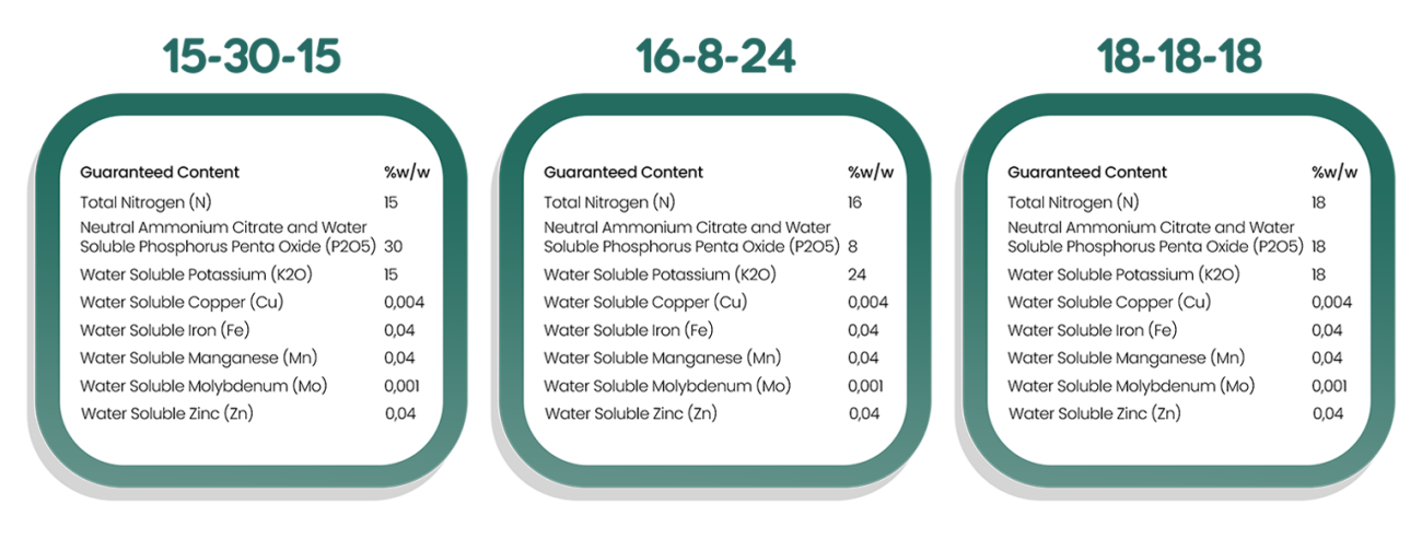 ✓ Because of its high solubility in water, it is easily taken up by the plant without leaving any residue.